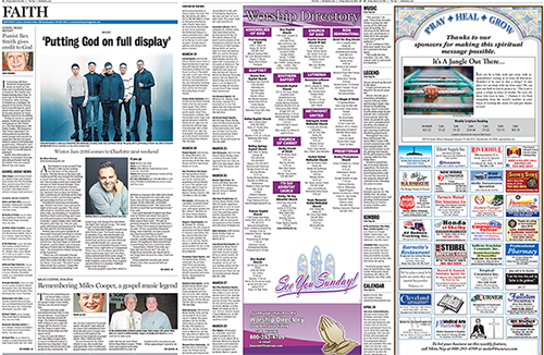 Effective and substantive religion sections include elements such as the KW Weekly Feature, Church News, Church Directory, Minister Columns, and other local stories of interest..